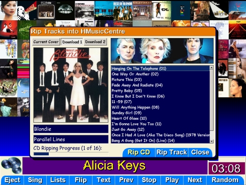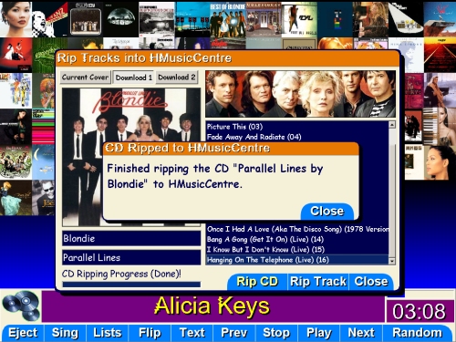 HMusicCentre connects to the FreeDB2 database using protocol level 1, to pull down CD information so that the set of Tracks to be ripped are named in a manner that HMusicCentre finds preferable - "TrackName (00).mp3". As soon as the Tracks on the CD have been ripped, the Album is ready for playing in HMusicCentre.